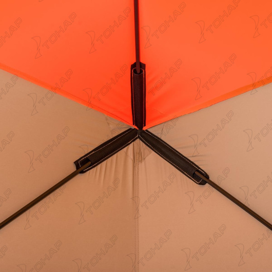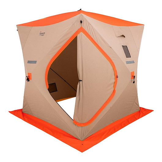 Быстроразборная палатка с широким входом специально разработана для зимней ловли со льда. Палатка обеспечивает защиту от ветра, дождя и низких температур. Продуманная конструкция зимней палатки 'Куб' позволяет установить её в течение одной-двух минут даже в одиночку. Зимняя палатка 'Куб' имеет удобную форму для размещения в ней одного, двух рыбаков. Высота палатки 2,2 м, что позволяет комфортно входить в неё. Чехол для транспортировки оснащен двумя лямками и ручкой. Палатку можно переносить как в руках, так и надев её как рюкзак на спину. Конструкция позволяет моментально разобрать 'Куб' и установить в месте ловли. Жесткий каркас дает возможность при необходимости передвинуть на более уловистые места не складывая полностью палатку. Широкая снегозащитная юбка удерживает тепло внутри, предотвращая попадание холодного воздуха. Юбка с люверсами d 30 мм, усиленными с обратной стороны прочной стропой. Диаметр люверса позволяет крепить палатку ко льду бурами-ввертышами. За счет продуманного цветового решения в такой палатке будет удобно ловить даже в пасмурную погоду. На стенках расположены 2 окна. Палатка 'Куб' оснащена вентиляционным окном с ветровыми клапанами обеспечат комфортный микроклимат внутри палатки. Особенности и преимущества зимних палаток 'Куб': - Пол в палатке отсутствует. - Дуги каркаса зафиксированы в углах палатки в специальные карманы из прочной стропы. - Углы тента палатки усилены дополнительными вставками из материала. - Прочный каркас из трубчатого стекловолокна (d 9,5 мм) обеспечивает надежное сохранение формы палатки даже при сильном ветре. - Металлический узел соединения дуг каркаса выдерживает даже очень сильные морозы. - Широкая снегозащитная юбка. - В комплект входят 4 ввертыша. - 2 прозрачных окна со шторками. - С помощью светозащитного клапана можно регулировать освещение в палатке, полностью или частично его открывая. - 2 вентиляционных окна с ветровыми клапанами обеспечат комфортный микроклимат внутри палатки. Характеристики: • Размеры в рабочем состоянии, м.: 2,0 х 2,0 х 2,2 • Размеры в транспортном положении, м.:1,47х0,2х0,2 • Вес, кг: 11,5 • Материал: полиэстер Oxford 250D (PU 1000 мм) • Каркас: fiberglass диаметром 9,5 мм. • Размер окна, см.: 16х24 • Цвет: оранжевый/коричневый Кубическая форма палатки позволяет более эффективно использовать внутреннее пространство в сравнении с палатками зонтичного типа. Яркие расцветки и светоотражающие вставки обеспечивают максимальную безопасность во время зимней рыбалки. В комплект входит удобная сумка-чехол с рюкзачными лямками для возможности переноски как в руках, так и на спине.