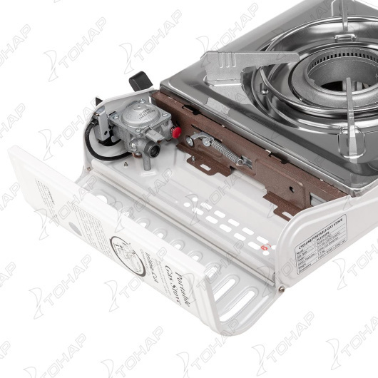 Портативная газовая плита, работает от газового баллона 220 г. Конфорка уникальной конструкции (технология - циклон) - повышается эффективность горения. Пластиковый кейс удобен для хранения и транспортировки. Функция повышенной безопасности с устройством прямого отключения газа (новая японская технология). Конфорка литой алюминий. Пьезоподжиг. Защита от ветра. Верхняя крышка из нержавеющей стали Характеристики: Мощность: 2.2 кВт (1 900 кКал) Расход газа: 160 г/час Размер плиты (ДхШхВ): 340 х 280 х 102 мм Вес плиты, нетто: 1,4 кг, в кейсе: 1,92 кг