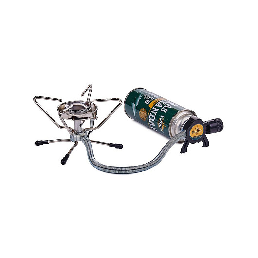 Мини плита в пластиковом кейсе с пьезо элементом на выносном шланге. Использование шланга повышает безопасность, а также удобство при эксплуатации. При низких температурах есть возможность поместить баллон в более теплое место для подогрева газа (например, спальный мешок). Тепловая мощность: 1,5 кВт (1290 ккал/ч); Расход газа (максимальный): 150 г/час; Вес плиты: 450 грамм (без кейса); Размер плиты (ВхДхШ): 100 х 160 х 160 мм; Пьезоподжиг: есть; Тип используемого баллона: цанговый. Внимание! Газовый баллон в комплект не входит.