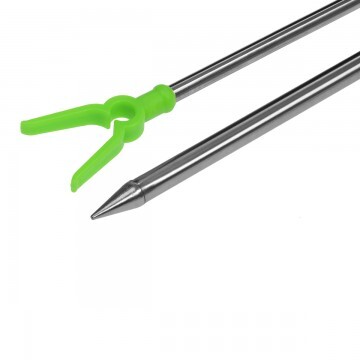 Телескопическая подставка для удерживания удилища на рыбалке. Подставка выполнена из стали с алюминиевой штангой и держателем для удилища. Замок рычагового типа позволяет быстро отрегулировать быстро подставку под нужную длину.