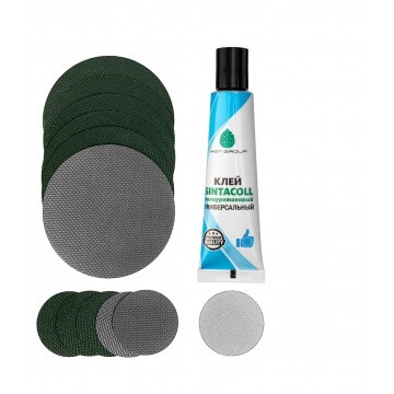 Ремкомплект для лодок ПВХ — это набор необходимых материалов, которые служат для максимально быстрого ремонта полученных повреждений в процессе эксплуатации лодки. Сама ПВХ ткань — довольно неприхотливый и простой в эксплуатации материал, поэтому надувные лодки можно легко и быстро отремонтировать даже в самых непростых условиях. Состав ремкомплекта: • шайбы из ПВХ-ткани (шайба диаметром 40мм - 6 шт., шайба диаметром 80мм - 6шт.) • клей для ПВХ «KleyBerg» (И 900) Клей стоек к действию масел, воды, кислот, бензина и длительно стоек к солнечному свету (ультрафиолету). В том случае, если прокол или порез произошел на воде, то заклеить его можно в «полевых» условиях. Однако наспех сделанная заплатка не прослужит долго, поэтому после возвращения домой такой «ремонт» стоит переделать. Ремонт лодки лучше производить в «гаражных» условиях, основательно и с запасом времени на то, чтобы клей полностью высох. Отремонтированное изделие можно использовать через 2 часа. Окончательное время высыхания клея — 12 часов. Ремкомплект также можно использовать для ремонта обуви из ПВХ.