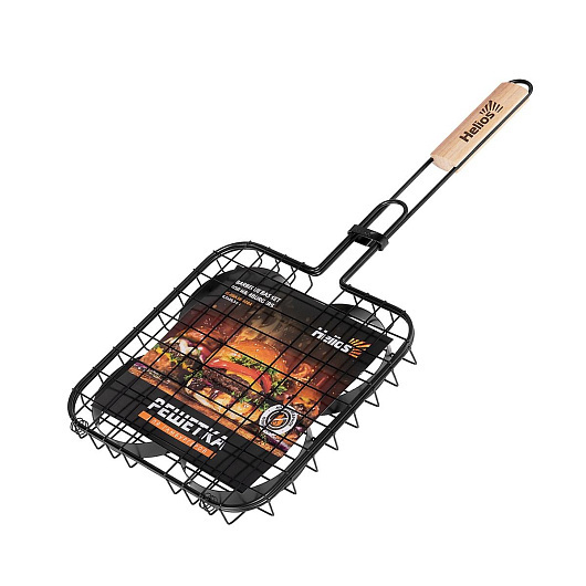 Решетка для гамбургеров с антипригарным покрытием. Предназначена для приготовления продуктов на углях. Подходит для барбекю, мангалов. Материал: сталь с антипригарным покрытием, дерево; Диаметр прутка: 4.3/3/1.7мм; Размер рабочей поверхности: 26,5 х 26,5 см; Длина с учетом ручки: 58,5 см; Вес: 750 гр. Срок годности не ограничен. Не подлежит обязательной сертификации. Способ применения: 1) Сдвинуть фиксирующее кольцо к рукоятке. 2) Снять верхнюю часть решетки. 3) Выложить продукты на нижнюю часть решетки. 4) Прижать продукты верхней частью решетки. 5) Закрепить фиксирующее кольцо. 6) Разместить решетку на мангале. 7) Во время приготовления переворачивать решетку по мере неоходимости.