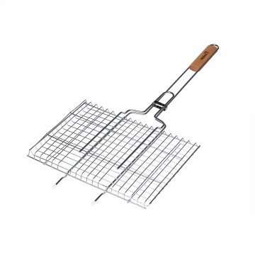 Решетка среднего размера для приготовления продуктов на углях. Характеристики: • Размер рабочей поверхности: 35*26 см • Длина с учетом ручки: 70 см • Материал: сталь с коррозионностойким покрытием (диаметр 5 мм, 3 мм, 2 мм), дерево