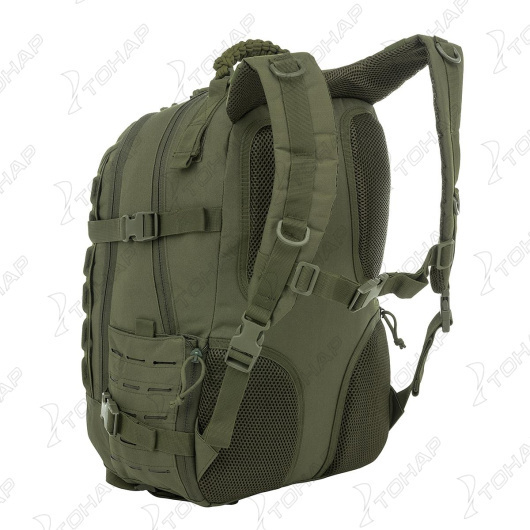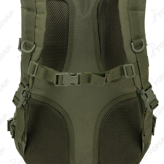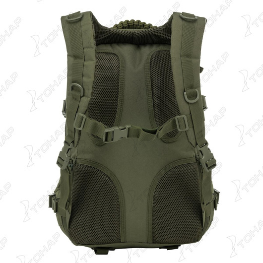 .Тактический рюкзак 25л для активного отдыха. Изготовлен из ткани Оксфорд 600 D высокой прочности, с водоотталкивающей пропиткой. Особенности: • Имеет большое отделение с двумя внутренними кармашками, один из которых на «молнии» и карабин для подвески ключей. • Объемный передний карман и два боковых на «молнии». • Возможность подключения питьевой системы. • Мягкие регулируемые плечевые ремни с регулируемой фиксацией на груди, боковые компрессионные ремни. • Насадки из стропы и липучек спереди и сбоку. • Аксессуарные петли. • На дне рюкзака компрессионные стропы для спальника или палатки. Характеристики: • Объем: 25 л • Материал: Оксфорд 600D, PU-пропитка • Расцветка: темная олива