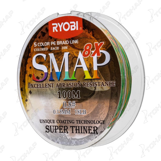 Шнур SMAP PE8X-100M 0.8# Multi Colour 0,148мм Ryobi