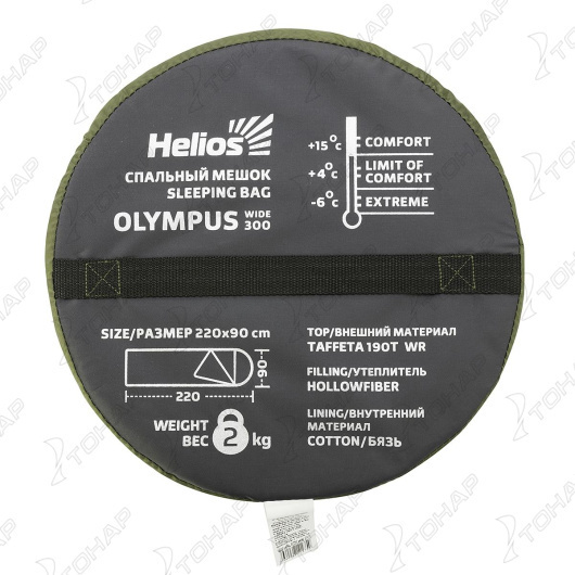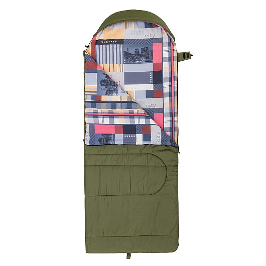 Спальный мешок OLYMPUS Wide 300 - большой спальный мешок с капюшоном. Представленная модель обеспечит комфортный сон во время путешествия, защитит вас от холода, влажности и ветра. Отличное решение для прохладной погоды. Утеплитель Hollow Fiber (300 грамм) отлично держит тепло и эффективно отводит влагу. * На спальных мешках, выпущенных с августа 2023г, используется внешняя ткань Taffeta 190T с водоооталкивающающей пропиткой WR, которая отталкивает влагу, позволяя ей скатываться по поверхности. Данная пропитка наносится только на внешнюю сторону материала, сохраняя при этом воздухопроницаемость материала. Такая ткань не отсыревает при высокой влажности, так как слой пропитки не пропускает даже мельчайшие молекулы воды в виде пара или тумана. Характеристики: • Размер: 220*90 см. • Материал внешний: Taffeta 190T, цвет - зеленый. • Внутренний материал: 100% хлопок (расцветка Ночной город). • Утеплитель: холлофайбер (300 г). • Температура комфорта: +15°C • Температура предела комфорта: +4°C. • Температура экстрима: -6°C. • Вес: 2,0 +- 0,1 кг. Конструктивные особенности спальника: • Капюшон с регулировкой шнуром и фиксаторами. • Боковая застежка на липучке. • Петли для подвешивания спальника во время просушки. • Упаковочный чехол с ручкой для переноски. Светоотражающий элемент на ручке. * Расцветка внутреннего материала может отличаться от расцветки на фотографиях. ** Допустимы отклонения по длине и ширине спального мешка от +3.0 см до -4.0 см (в соответствии с ГОСТ 31307-2005 («Белье постельное»).