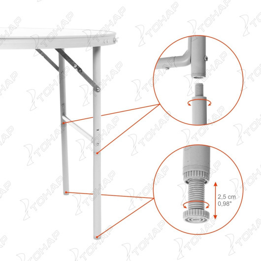 Складной стол овальной формы - идеальный выбор для выездов на природу всей семьей или большой компанией друзей. Алюминиевый каркас делает эту модель одновременно легкой и надежной. А овальная форма столешницы позволяет комфортно разместиться за столом большому количеству людей. Стол складывается пополам для транспортировки и упакован в транспортировочный чехол на молнии. Характеристики: • Размер стола: 120х90х66 см. • Каркас стола: алюминиевая труба (19 и 25 мм). • Столешница: ламинированная ДСП. • Допустимая нагрузка на стол: 30кг. • Вес стола – 7.05 кг.