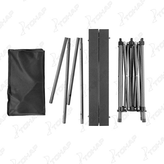 Отличное решение для пикника, рыбалки, охоты. Можно использовать на даче, в туристических походах. За счет маленького размера в сложенном виде, стол удобнен в перевозке. Дополнительное отделение из ткани, полезно для размещения продуктов, столовых приборов и посуды. Габариты: 94 x 55 x 50 см; Размер в сложеном виде ДхШхВ: 55 х 25 х 15 см; Каркас: стальная труба Ø 19мм, Ø 13 мм; Столешница: алюминий; Материал подвесного отделения: Оксфорд 600D; Размер подвесного отделения ДхШхВ: 70 х 40 х 20 см; Максимальная нагрузка на столешницу: 30 кг; Вес: 5,85 кг.