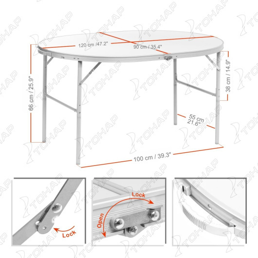 Складной стол овальной формы - идеальный выбор для выездов на природу всей семьей или большой компанией друзей. Алюминиевый каркас делает эту модель надежной и одновременно легкой. Овальная форма столешницы позволяет комфортно разместиться за столом большому количеству людей. Характеристики: • Размер стола: 120х90х66 см. • Каркас стола: алюминиевая труба (19 и 25 мм). • Столешница: ламинированная ДСП. • Допустимая нагрузка на стол: 30кг. • Вес: 7 ± 0,1 кг. Упаковка: п/э пакет, коробка.