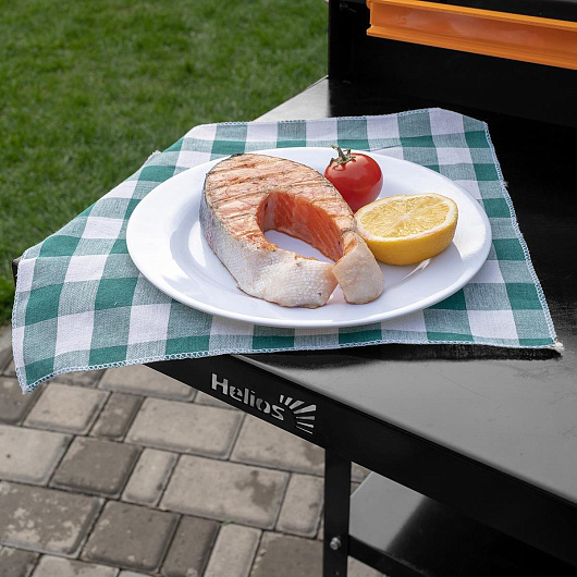 Столик боковой сплошной Helios SMART. Крепится сбоку мангала. Расширяет рабочую зону, при необходимости складывается двумя движениями. Полимерное покрытие. Материал: сталь 1,5 мм/3 мм; Габаритные размеры: 380 x 390 x 36 мм; Вес: 3,25 кг. Комплектация: Столик сплошной - 1 шт. Кронштейн - 2 шт. Держатель для инструментов малый - 1 шт. Винт М6x16 - 6 шт. Гайка М6 - 6 шт. Шайба 6 - 12 шт. Инструкция - 1 шт. Коробка - 1 шт.