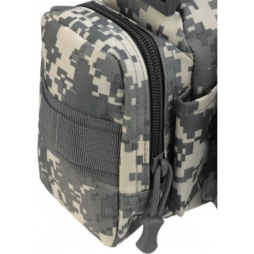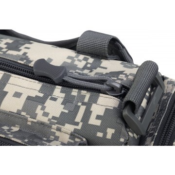 Сумка оснащена надежным наплечным ремнем на фиксаторе -липучке. Внутри сумка имеет одно большое отделение. На спинке сумки имеется тканевая шлевка для продевания ремня и ношения сумки на поясе. На передней части и боковых сторонах сумки расположены вместительные карманы на молнии.