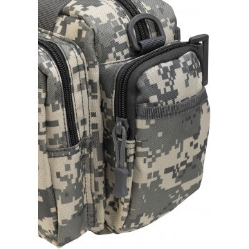 Сумка оснащена надежным наплечным ремнем, а также креплением на пояс.