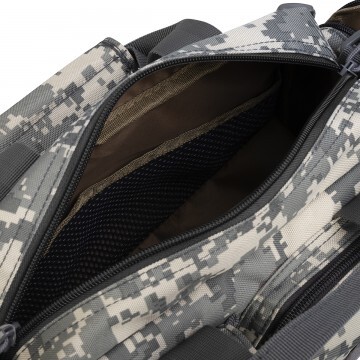 Сумку отличают множество карманов, удобные застежки и молнии, яркий дизайн. Спереди у сумки имеются два разноразмерных кармана на молнии и застежке Velcro. С боков два вытянутых кармана на молнии. Внутри сумка разделённая на два отделения и имеет один внутренний карман из сетки.