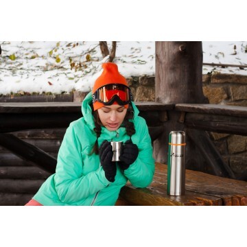 Термос HS.TМ-015 оснащен двойными стенками с вакуумной изоляцией, которая позволяет сохранять напитки горячими или холодными длительное время. Отлично сохраняет температуру, свежесть напитка и его оригинальный вкус. Изготовлен из высококачественной нержавеющей стали, корпус покрыт защитным прозрачным лаком. Дополнительная теплоизоляция внутри пробки. Пробка без кнопки надежно закрывает колбу и проста в использовании. Вместительная крышка-чашка. • Объем: 750 мл. • Материал: пищевая нержавеющая сталь, пластмасса. • Узкое горло Сохранение холода: 24 часа Сохранение тепла: 78 С° - 6 часов 72 С° - 9 часов 55 С° - 24 часа