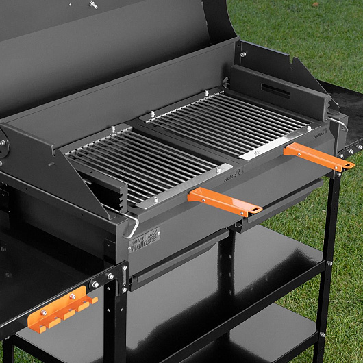 Угольный лифт Helios SMART 800 дает возможность регулировать положение положение угля по отношению к решетке или шампурам. С ним Вы сможете корректировать воздействие жара на блюдо. Регулировка осуществляется с помощью съемных ручек. Покрыт термостойкой антикоррозионной эмалью. Материал: сталь 2 мм/3 мм; нержавеющая сталь, дерево; Габаритные размеры: 790 x 322 x 155 мм; Вес: 10,45 кг. Комплектация: Угольный лифт - 1 шт. Ручка угольного лифта - 2 шт. Скоба - 2 шт. Шплинт 2,5 x 12 - 4 шт. Шайба 6 - 4 шт. Инструкция - 1 шт. Коробка - 1 шт.