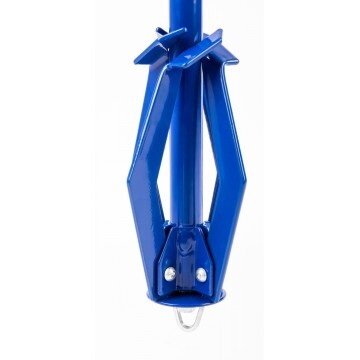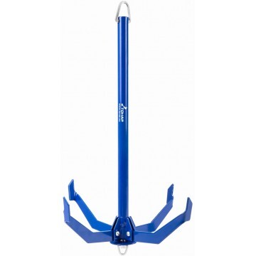 Якорь лодочный складной ЯЛС-01 освоен в 2000 г. (авторские права защищены). Якорь предназначен для удержания надувных лодок на месте стоянки. Модель идеально подойдет для стоячей воды. Основным преимуществом данной конструкции является возможность складывать лапки якоря, что значительно уменьшает его габариты и обеспечивает безопасность при транспортировке. Наличие кольца для страховочной веревки убережет якорь от зацепа или обрыва каната. Характеристика якоря: • Высота – 415 мм • Диаметр в трансп. положении – 93 мм • Диаметр в рабочем положении – 303 мм • Вес якоря – 1,39 кг • Покрытие – полимерное Якорь состоит из веретена, приваренных к нему кронштейнов, в которых при помощи заклепок фиксируются складывающиеся лапки. Шайба и винт служат для закрепления лапок в рабочем или транспортном положении. Кольцо предназначено для крепления веревки. Страховочная веревка (лучше использовать веревку другого цвета), служащая для подъёма якоря в случае его "глухого" зацепа, крепится при помощи кольца. Надежное полимерное покрытие предотвращает коррозию металла. Приведение якоря в рабочее положение из транспортного производится следующим образом: взяв якорь, выкручиваем винт за кольцо из веретена до тех пор, пока лапки не расположатся горизонтально. После этого винт вновь заворачивается в веретено до жесткой фиксации лапок в рабочем положении. Приведение якоря в транспортное положение производится в аналогичном порядке.