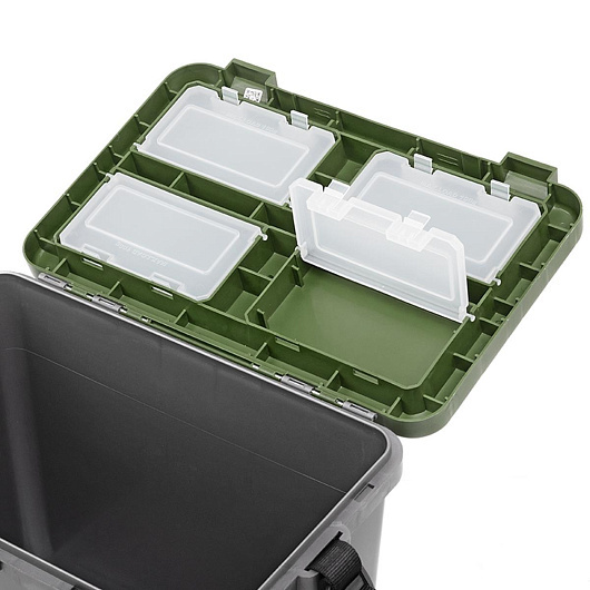 Ящик рыболовный зимний односекционный торговой марки Helios, изготовленный из ударопрочного, морозостойкого и в то же время легкого пластика, обеспечивает надежное хранение и транспортировку рыболовных снастей. Благодаря объему 19 литров, ящик вместит очень много полезных снастей для рыбалки. Основной отсек предназначен для переноски рыболовных снастей, термоса, так же удобен для перевозки улова. На внутренней стороне крышки размещены 4 отеделения с полупрозразчными крышечками для хранения мелких аксессуаров. Надежные и прочные замки не позволят изделию самопроизвольно открыться, а удобный наплечный ремень поможет комфортно его транспортировать. Пластиковый каркас выдерживает низкие температуры до -40˚С, не пропускает и не впитывает воду. Мягкое незамерзающее сиденье на крышке ящика, аккумулирующее тепло, позволит рыболову комфортно рыбачить с ящика долгое время. На дне ящика расположены специальные насечки против скольжения по льду. Летом подобный ящик несомненно пригодится для береговой рыбалки, когда необходимо иметь все снасти под рукой. Характеристики: Материал: ударопрочный и морозостойкий пластик, не впитывающий и не пропускающий воду. Нагрузка: 130 кг. По проведенным тестированиям максимальная нагрузка ящика - 210 кг. Объем: 19 л. Длина: 39 см (по верху), 32 см - по низу. Ширина: 25,7 см (по верху), 19 см - по низу Высота: 32 см Вес: 1,55 кг. Цвет: серый/хаки.