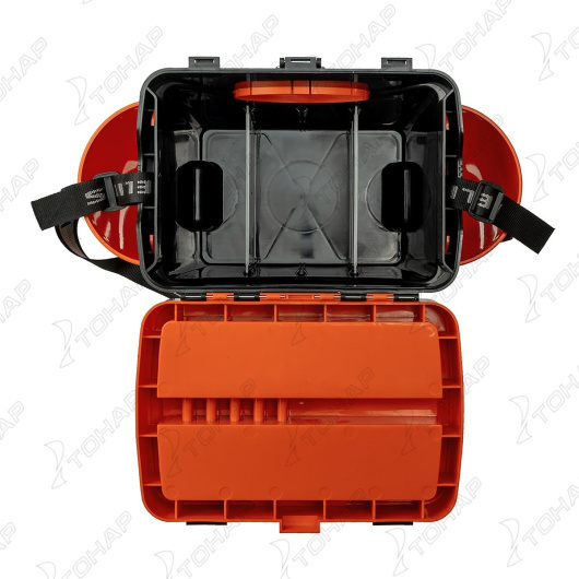 В конструкции ящиков рыболовных FISHBOX торговой марки Helios предусмотрено все, что создает рыболову комфортные условия ловли. Оптимальная форма, размер и пропорции ящиков специально рассчитаны таким образом, чтобы обеспечивать хорошую устойчивость, легкость в использовании, удобство при переноске. В положении сидя любой человек будет чувствовать себя комфортно. Характеристики: • Длина (с учетом навесных карманов): 432 мм. • Длина (без навесных карманов): 310 мм. • Высота: 404,5 мм. • Ширина: 230 мм. • Нагрузка: 120 кг. • Материал - морозоустойчивый, ударопрочный пластик, который не впитывает и не пропускает воду. • Вес: 2,4 кг. • Объем основного отделения: 10 л. • Цвет: оранжевый. Основные преимущества рыболовного ящика: • Регулируемый по длине плечевой ремень с прорезиненной вставкой, которая предотвращает соскальзывание ящика с плеча во время движения. • Удобные защелки крышки. • Мягкое сидение из пенополиуретана на крышке, которое не впитывает влагу. • Специальные противоскользящие элементы на дне ящика. Пластик не подвержен деформациям и прекрасно удерживает первоначальную форму ящика даже при значительном весе рыбака. Ящик из такого пластика не впитывает запахи и легко отмоется от рыбной слизи, глины и других загрязнений. Функциональное основное отделение служит своеобразным каркасом, предотвращающим прогибы ящика и надежно удерживающим вес рыбака. Съемные перегородки предназначены для более удобного хранения принадлежностей. Система навесных пластиковых карманов позволяет удобно расположить все, что должно находиться под рукой: багорик, запасные удочки, черпак и прочие рыболовные инструменты. Общий полезный объем ящиков за счет таких «карманов» значительно увеличивается. Их можно легко навесить и снять уже находясь на месте ловли. На внутренней стороне откидной крышки размещены 3 прозрачных закрывающихся бокса, в которых достаточно места для блесен, балансиров, рыболовных крючков, мормышек и прочих мелких снастей. Вставка-органайзер имеет две секции, где можно удобно разместить удильники, а при необходимости эти секции можно разделить на более мелкие отделы с помощью съемных перегородок, входящих в комплект. Также имеются 5 прорезей для фиксации коротких удочек. Товар был номинирован в конкурсе на лучший новый продукт "Best New Product" в категории "Best new boxes, holders, bags and luggage" в рамках международной выставки EFTTEX-2017. Пример сборки зимнего ящика.