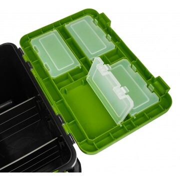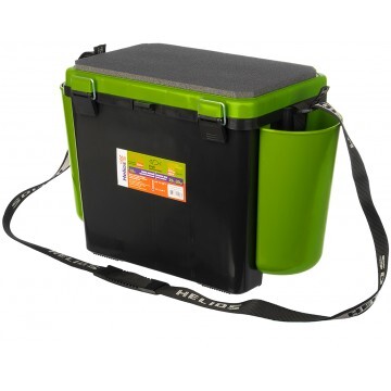 В конструкции ящиков рыболовных FISHBOX торговой марки Helios предусмотрено все, что создает рыболову комфортные условия ловли. Оптимальная форма, размер и пропорции ящиков специально рассчитаны таким образом, чтобы обеспечивать хорошую устойчивость, легкость в использовании, удобство при переноске. В положении сидя любой человек будет чувствовать себя комфортно. Характеристики: • Длина (с учетом навесных карманов): 500 мм. • Длина (без навесных карманов): 380 мм. • Высота: 320 мм. • Ширина: 255 мм. • Нагрузка: 130 кг. • Материал - морозоустойчивый, ударопрочный пластик, который не впитывает и не пропускает воду. • Вес: 2,1 кг. • Объем основного отделения: 19 л. • Цвет: зеленый. Основные преимущества рыболовного ящика: • Регулируемый по длине плечевой ремень с прорезиненной вставкой, которая предотвращает соскальзывание ящика с плеча во время движения. • Удобные защелки крышки. • Мягкое сидение из пенополиуретана на крышке, которое не впитывает влагу. • Специальные противоскользящие элементы на дне ящика. Пластик не подвержен деформациям и прекрасно удерживает первоначальную форму ящика даже при значительном весе рыбака. Ящик из такого пластика не впитывает запахи и легко отмоется от рыбной слизи, глины и других загрязнений. Функциональное основное отделение служит своеобразным каркасом, предотвращающим прогибы ящика и надежно удерживающим вес рыбака. Съемные перегородки предназначены для более удобного хранения принадлежностей. Система навесных пластиковых карманов позволяет удобно расположить все, что должно находиться под рукой: багорик, запасные удочки, черпак и прочие рыболовные инструменты. Общий полезный объем ящиков за счет таких «карманов» значительно увеличивается. Их можно легко навесить и снять уже находясь на месте ловли. На внутренней стороне откидной крышки размещены 4 прозрачных закрывающихся бокса, в которых достаточно места для блесен, балансиров, рыболовных крючков, мормышек и прочих мелких снастей. Пример сборки зимнего ящика.
