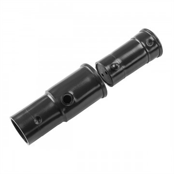 Замок состоит из двух пластмассовых трубок разного диаметра, жестко фиксирующихся подпружиненным фиксатором. Сбор весла с таким узлом занимает не более секунды, а надежность соединения не уступает резьбовому.
