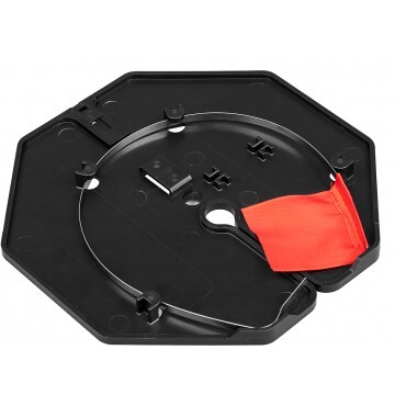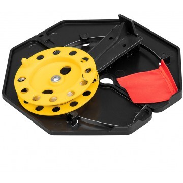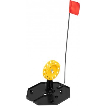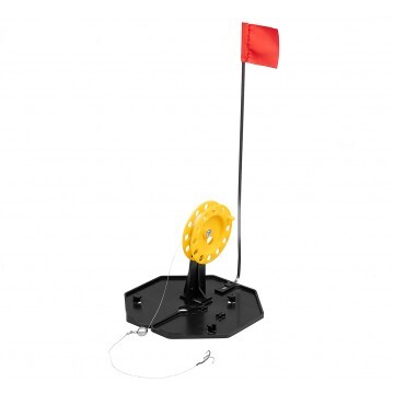Жерлица зимняя для подледной ловли рыбы состоит из основания, стойки с катушкой и флажка-сигнализатора. Большое и прочное основание жерлицы из морозостойкого полипропилена гарантирует затемнение и защиту лунки от замерзания. Основание выполнено в виде восьмиугольника, что предотвращает проворачивание жерлицы в снегу. На основании находятся: прорезь для завода лески, паз под крепление стойки с катушкой, паз под крепление сигнализатора — флага.